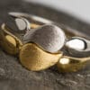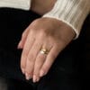 Χρυσό δαχτυλίδι σε 14 ή 18 καράτια, διαθέσιμο σε κίτρινο ή λευκό χρυσό, με λιτό σχεδιασμό που ισορροπεί αρμονικά ανάμεσα σε ματ και γυαλιστερές υφές. Η καθαρότητα των γραμμών του το καθιστά διαχρονικό και ευκολοφόρετο, ιδανικό για κάθε στιγμή της ημέρας.