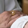 Χρυσό δαχτυλίδι από τη συλλογή PRIMAVERA, με κομψό μοτίφ σπείρας που αγκαλιάζει ένα μαργαριτάρι στο κέντρο, δημιουργώντας μια αρμονική και θηλυκή σύνθεση. Η διπλή, χειροποίητη βάση ακολουθεί το ίδιο ύφος, ενισχύοντας τη συνοχή και την αισθητική του σχεδίου. Ένα εκλεπτυσμένο κόσμημα με διακριτική λάμψη και κίνηση, που φοριέται εύκολα και ξεχωρίζει. Συνδυάζεται ιδανικά με το αντίστοιχο μενταγιόν και τα σκουλαρίκια της σειράς για ένα ολοκληρωμένο σύνολο.