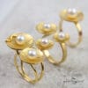 Στο κέντρο κάθε μοτίφ τοποθετούνται λευκά στρογγυλά μαργαριτάρια, προσθέτοντας φωτεινότητα και κομψότητα.