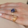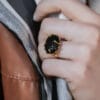Χρυσό δαχτυλίδι σε 14 ή 18 καράτια, με κομψό και διαχρονικό σχεδιασμό. Διατίθεται με επιλογή πέτρας που προσαρμόζεται στο προσωπικό σας ύφος: ηφαιστειογενής λάβα, ένα φυσικό και βιώσιμο υλικό με ιδιαίτερο χαρακτήρα, βαθύ μπλε lapis που χαρίζει ένταση και βάθος, ή ασύμμετρο μαργαριτάρι (mother of pearl) για πιο απαλή και φωτεινή αισθητική.