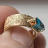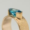 Εντυπωσιακό δαχτυλίδι σε χρυσό 14 ή 18 καρατίων, με φαρδιά και στιβαρή βέρα που αποπνέει δυναμισμό και κομψότητα. Μπορείτε να επιλέξετε ανάμεσα σε ροζ ή πράσινη τουρμαλίνη ή σε ένα φωτεινό Blue Topaz σε κοπή navette, καθώς και την υφή που σας εκφράζει — γυαλιστερή ή ice matte. Ο συνδυασμός της έντονης φόρμας με τις πολύτιμες πέτρες δημιουργεί ένα κόσμημα με λάμψη, χαρακτήρα και ξεχωριστή αισθητική, ιδανικό για εμφανίσεις που θέλουν να ξεχωρίζουν.