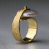 Χρυσό μασίφ δαχτυλίδι από τη συλλογή KYKLOS, διαθέσιμο σε ματ ή γυαλιστερή υφή, που αναδεικνύει την καθαρότητα του σχεδιασμού. Το πρωτότυπο design ολοκληρώνεται με ένα ακατέργαστο μαργαριτάρι ή αμέθυστο σε σχήμα button, προσθέτοντας φυσική ομορφιά και ιδιαίτερο χαρακτήρα.