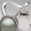 Λευκόχρυσο δαχτυλίδι 18 καρατίων με ιδιαίτερο σχεδιασμό, που συνδυάζει τη λάμψη των λευκών διαμαντιών με ένα εντυπωσιακό γκρι μαργαριτάρι Ταϊτής στο κέντρο. Η αντίθεση των υλικών δημιουργεί ένα κομψό και ξεχωριστό αποτέλεσμα, αναδεικνύοντας τη φυσική ομορφιά του μαργαριταριού.