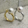 Δαχτυλίδι από τη συλλογή KYKLOS σε λευκό ή κίτρινο χρυσό 14 ή 18 καρατίων, με ιδιαίτερο minimal σχεδιασμό που αναδεικνύει την κομψότητα μέσα από την απλότητα. Στο κέντρο δεσπόζει ένα υπέροχο μαργαριτάρι, ενώ ένα διακριτικό στοιχείο λάμψης το συνοδεύει, δημιουργώντας μια εκλεπτυσμένη και ισορροπημένη σύνθεση.
