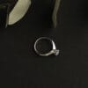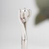 Εντυπωσιακό μονόπετρο δαχτυλίδι σε λευκόχρυσο 18 καρατίων, σε σχήμα “φλόγα”, με στρογγυλό διαμάντι σε κοπή brilliant που αναδεικνύεται με μοναδικό τρόπο. Τα τέσσερα επικλινή δόντια ακολουθούν αρμονικά τη φόρμα της πέτρας και αφήνουν το φώς να περάσει τόσο απο κάτω όσο και απο τα πλάγια της πέτρας ενισχύοντας τη λάμψη της.