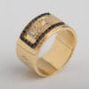 Επιβλητικό χρυσό δαχτυλίδι με λευκά και μαύρα διαμάντια