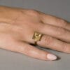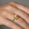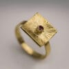 Χρυσό δαχτυλίδι από τη συλλογή DIATHLASIS σε 14 ή 18 καράτια, με μία τουρμαλίνη τοποθετημένη σε χρυσή θήκη στο κέντρο. Ο minimal σχεδιασμός του αναδεικνύει τη φυσική ομορφιά της πέτρας, δημιουργώντας ένα κομψό και ισορροπημένο αποτέλεσμα. Φοριέται εύκολα σε κάθε στιγμή της ημέρας, είτε μόνο του για διακριτική εμφάνιση είτε σε συνδυασμό με άλλα δαχτυλίδια για πιο σύγχρονο layering.