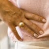 Εντυπωσιακό δαχτυλίδι από κίτρινο χρυσό 14 ή 18 καρατίων, με ένα μαργαριτάρι Mabe σε ημισφαιρικό σχήμα που το κάνει να ξεχωρίζει. Η καθαρή γραμμή του σχεδίου αναδεικνύει τη φυσική ομορφιά του μαργαριταριού, ενώ ο ιριδισμός του χαρίζει διακριτική λάμψη. Με διάμετρο 13 χιλ., το μαργαριτάρι δίνει χαρακτήρα στο κόσμημα χωρίς υπερβολές.