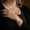 Ξεχωριστή μασίφ αλυσίδα σε κίτρινο ή λευκό χρυσό 14 ή 18 καρατίων, που εντυπωσιάζει από την πρώτη ματιά με τον δυναμικό της χαρακτήρα. Ο προσεγμένος σχεδιασμός και η σφυρήλατη τεχνική αναδεικνύουν την κομψότητα, προσθέτοντας μια αίσθηση σύγχρονης πολυτέλειας σε κάθε εμφάνιση.