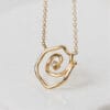 Χρυσό κολιέ από τη συλλογή SPIRE, που αποπνέει κομψότητα και διακριτική πολυτέλεια μέσα από το εκλεπτυσμένο μοτίφ σπείρας. Στο κέντρο του λάμπει ένα φωτεινό διαμάντι ή λευκή πέτρα ζιργκόν, χαρίζοντας μια διακριτική αλλά εντυπωσιακή λάμψη.