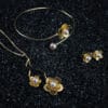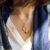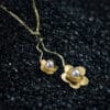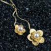 Χειροποίητο μενταγιόν της συλλογής PHYSIS σε 14 ή 18 καράτια χρυσού, με δύο ανθάκια σε διαφορετικές διαστάσεις διακοσμημένα με λευκά μαργαριτάρια. Μια ρομαντική πρόταση για ξεχωριστές περιστάσεις. Ιδανικά ταιριάζει με το βραχιόλι και τα σκουλαρίκια της συλλογής.