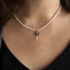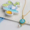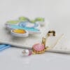 Μενταγιόν από χρυσό 14 ή 18 καρατίων με πέτρα τύπου cameo σε τρεις υπέροχες αποχρώσεις – μπλε, τυρκουάζ και ροζ – συνδυασμένο με ένα διακριτικό μαργαριταράκι που προσθέτει φινέτσα και κομψότητα. Ο ρομαντικός σχεδιασμός του αποπνέει τρυφερότητα και διαχρονική αισθητική.