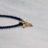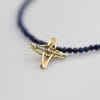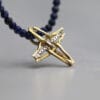 Διακριτικός σταυρός σε δύο χρώματα χρυσού 14 ή 18 καρατίων που διατίθεται και περασμένος σε κολιέ ορυκτών πετρών Lapis Lazulli με έντονο μπλε χρώμα.