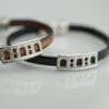 Βραχιόλι σε ασήμι 925° της συλλογής κοσμημάτων KAVALA. Το χαρακτηριστικό μοτίφ της συλλογής είναι περασμένο σε πλακέ δερμάτινο κορδόνι. Ένα βραχιόλι ιδανικό να φορεθεί τόσο από γυναίκες όσο και από άντρες.