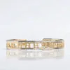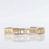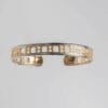 Δουλεμένο με δεξιοτεχνία σε χρυσό 14 ή 18 καρατιών – διαθέσιμο σε διχρωμία. Η επιλογή σας σε λευκό ή κίτρινο χρώμα χρυσού αφορά το κεντρικό μοτίφ με τις καμάρες, ενώ οι βέρες στις πλαϊνές πλευρές του βραχιολιού γίνονται πάντα στο αντίθετο χρώμα χρυσού.