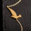 Χρυσό βραχιόλι 14 ή 18 καρατίων με μοτίφ περιστέρι, αρμονικά “δεμένο” σε ανθεκτική αλυσίδα. Ένα ανάλαφρο κόσμημα που μπορεί να φορεθεί όλες τις ώρες της ημέρας, ακόμη και σε συνδυασμό με άλλα βραχιόλια!