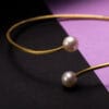 Τις άκρες του στολίζουν δυο φωτεινά λευκά μαργαριτάρια, που χαρίζουν διαχρονικότητα αλλά και φινέτσα σε αυτήν την λεπτή δημιουργία. Ευκολοφόρετο και χειροποίητο, θα σας συνοδεύσει όλες τις ώρες.